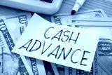 Cash advance is shown using the text and photo of dollars as business and financial concept