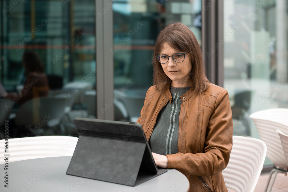 Color Portrait – Woman with Tablet in Modern Café Ambience