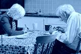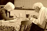 Senior elderly couple keeping mind active by doing crossword puzzle