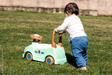 Baby first steps on grass outdoors