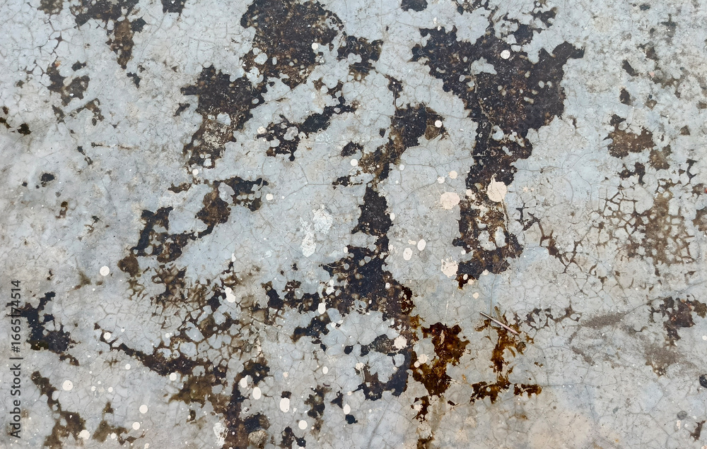 Distressed Concrete Texture: Weathered Gray Surface with Dark Stains and Cracks, Grunge Background