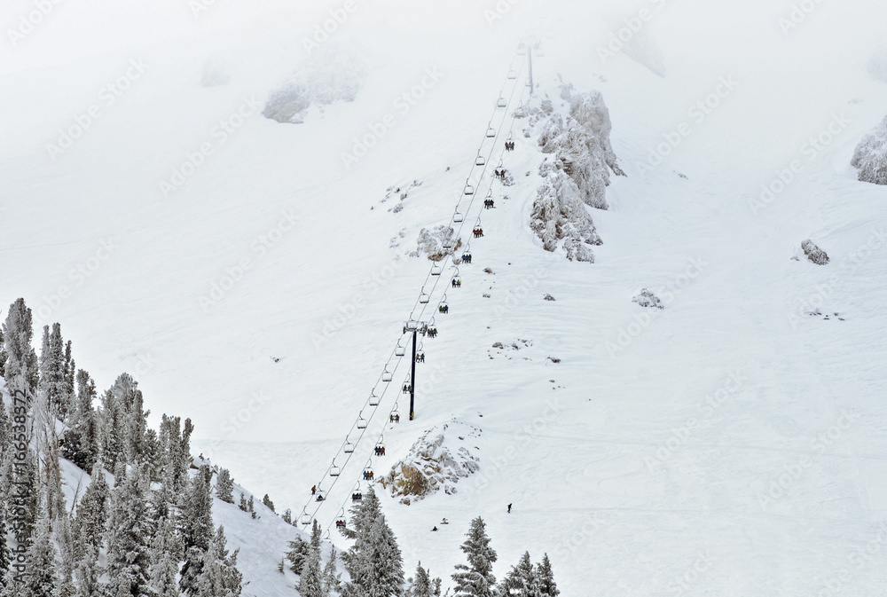 Ski lift chair ascending the mountainside