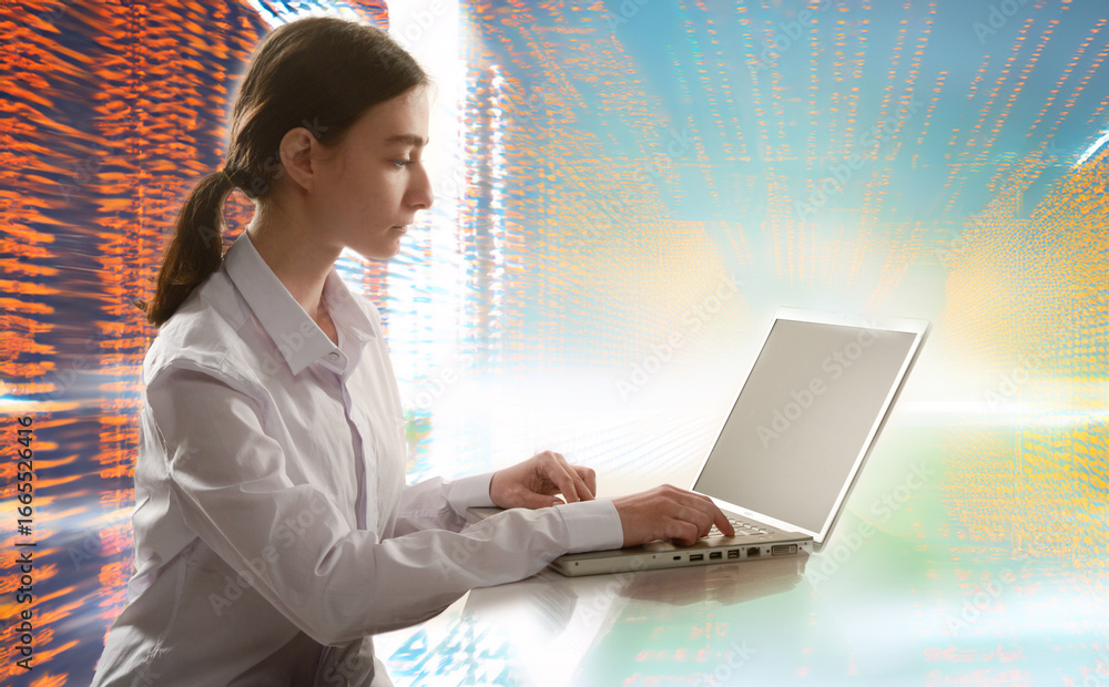 young lady working on laptop