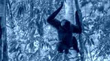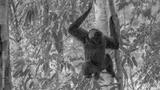 a wide shot of a sumartran siamang sitting on a branch in the rainforest of gunung leuser national park on sumatra, indonesia