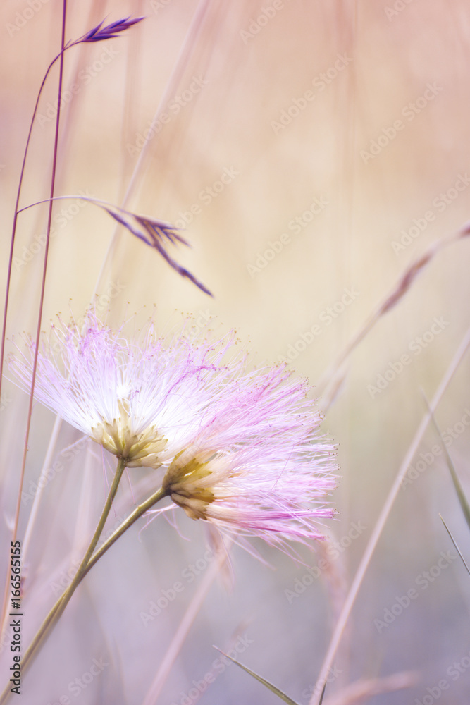Two gentle pink fluff flowers nestled against each other on a gentle soft background. The idea of feelings, love, tenderness. Soft focus.
