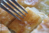fork pick turkish borek closeup
