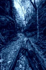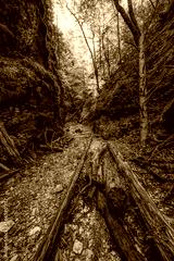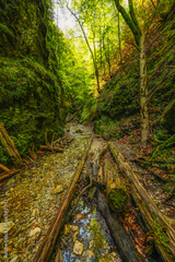 Waterfall with ladder in canyon, sucha bela in Slovak Paradise or Slovensky Raj National Park in Slovakia.