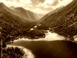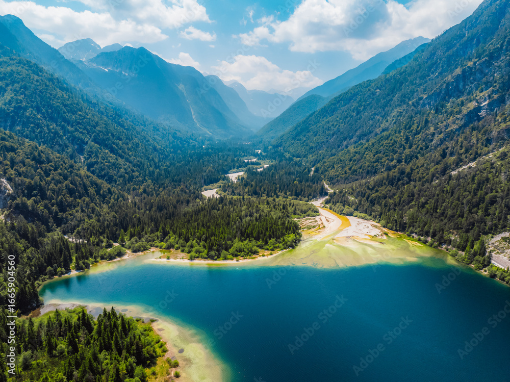 Lago del Predil, Italian julians Alps. Alpine lake in north Italy near the Slovenian border, Italy.
