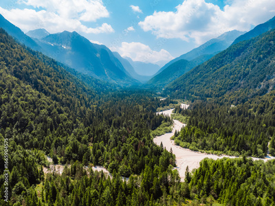 Lago del Predil, Italian julians Alps. Alpine lake in north Italy near the Slovenian border, Italy.