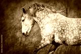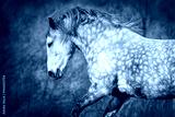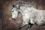 Grey horse with long mane portrait in motion