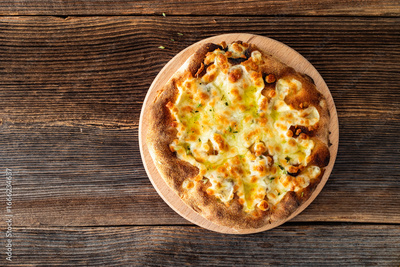 Pinsa bianca white pizza with oregano on wooden table