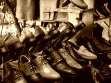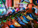 Handmade leather goods on display in old town Hoi An, Danang, featuring men dress shoes, boots, sandals, and bags. A vibrant showcase of Vietnamese craftsmanship at a street-side artisan shop