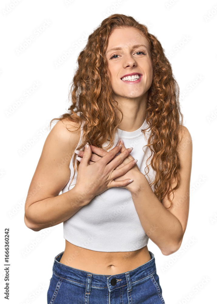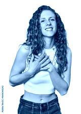 Simple redhead studio portrait with fingers on lips keeping a secret.