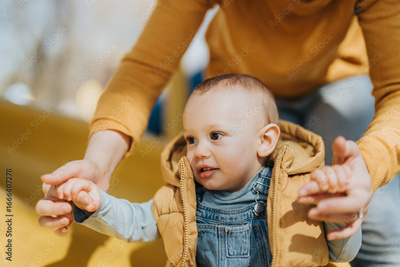 Parent enjoying a bonding moment while guiding cheerful child at a sunny playground filled with joy, warmth, and love, emphasizing the importance of connection and togetherness in childhood.