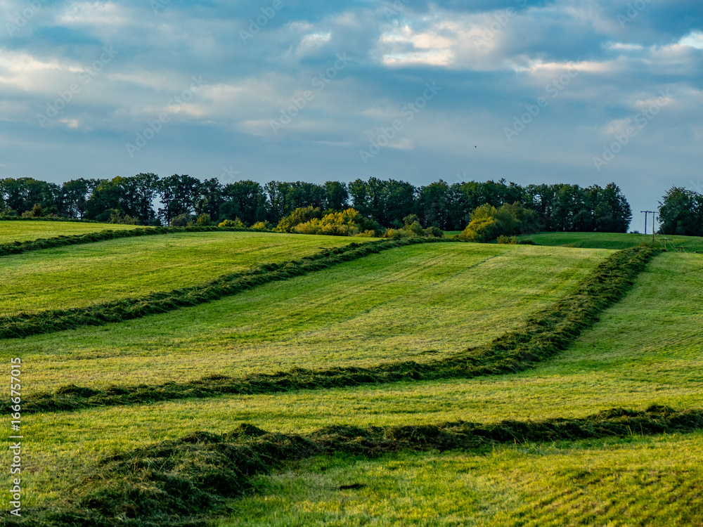 Frisch gemähte Wiese am Abend