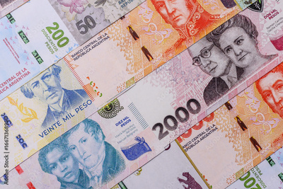 Argentina paper money, peso banknotes as currency for exchange or travel. Argentina money