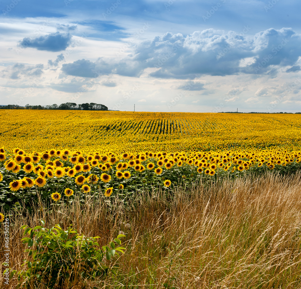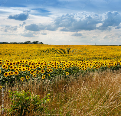 Sunflower field with grass