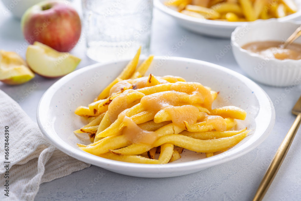 Potato dumplings with apple puree, sweet German Schupfnudeln