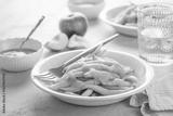 Potato dumplings with apple puree, sweet German Schupfnudeln