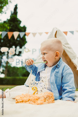 Celebrating a wonderful and cheerful second birthday filled with delicious cake and lots of fun activities in the warm summer sun, surrounded by family and friends for a memorable day