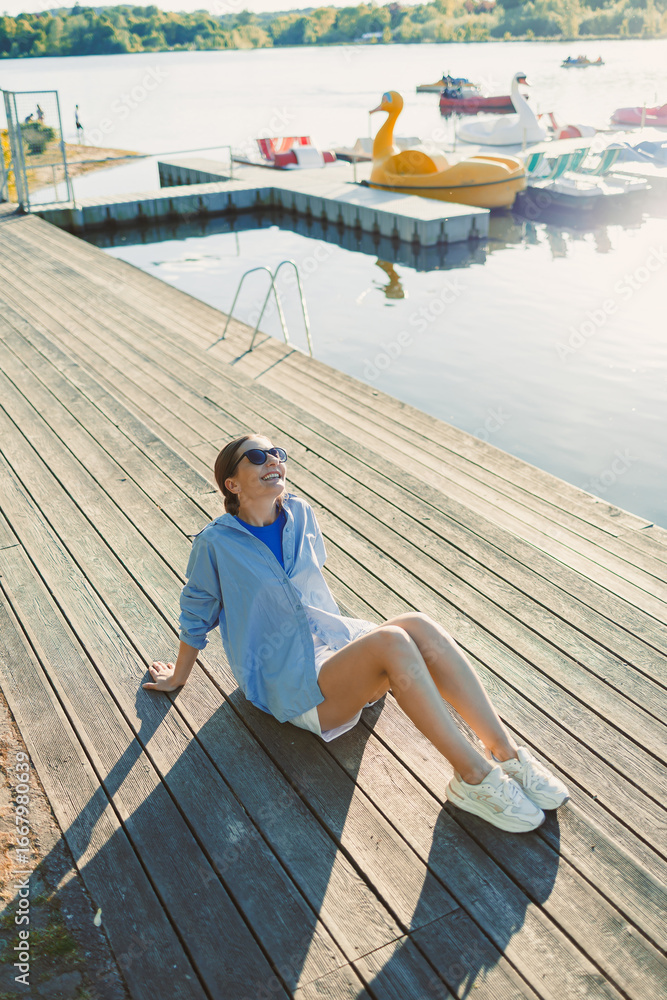 Relaxing on the Dock Enjoy a serene day by the shimmering water, with breathtaking views and vibrant paddle boats, enhancing the charming atmosphere and creating unforgettable memories
