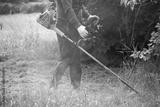 Lawn mover on green grass. Machine for cutting lawns.