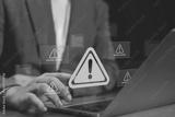 System hacked warning alert on laptop. error 404 alerts on a laptop, caution of spam in website digital Cyber attack on computer network, Virus, Spyware, Malware or Malicious software. Cyber sec