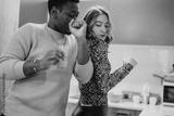 Couple having fun together in their home kitchen. Capturing moments of joy, connection, and shared energy, emphasizing diversity and genuine emotions.