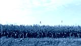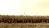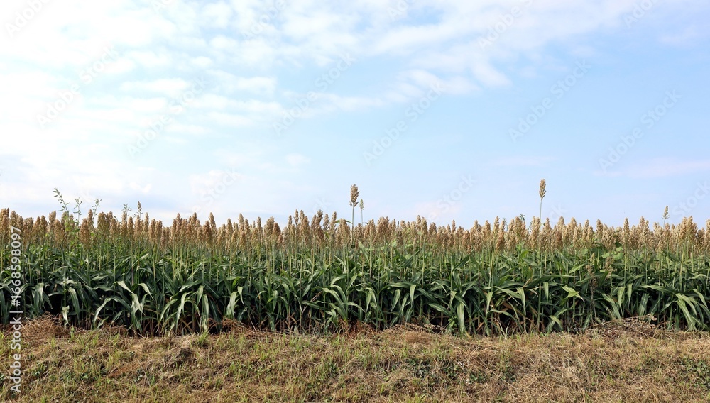 Edge of sorghum field under a blue cloudy sky in the end of summer
