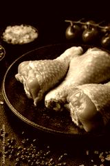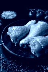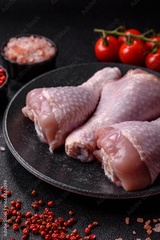 Raw chicken or turkey legs as a food background for cooking on a barbecue or grill. Chicken raw legs