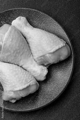 Raw chicken or turkey legs as a food background for cooking on a barbecue or grill. Chicken raw legs