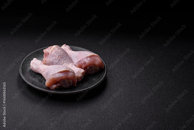 Raw chicken or turkey legs as a food background for cooking on a barbecue or grill. Chicken raw legs