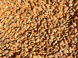 Various almond seeds spread out on a surface for drying under natural sunlight in a rural setting