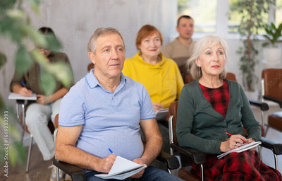 Group of mature students attending lecture in college