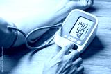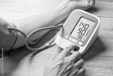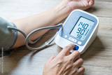 Man check blood pressure monitor and heart rate monitor with digital pressure gauge. Health care and Medical concept