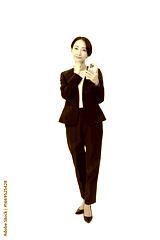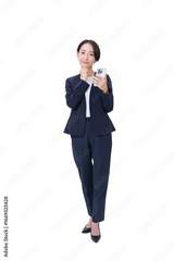 携帯を持つ女性・背景透過