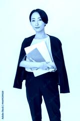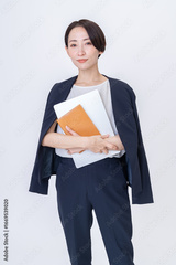 パソコンと手帳を持つ女性