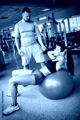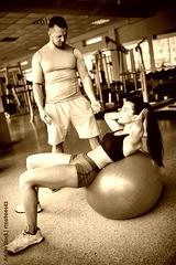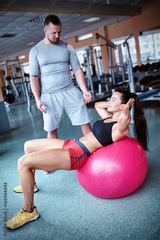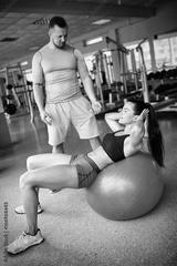 woman doing push exercise under supervision of a trainer