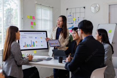 Accounting company provide finance and taxation planning for profitable cash flow, Auditor accountant asian team working in office, analyze financial data and accounting record with calculator.Insight