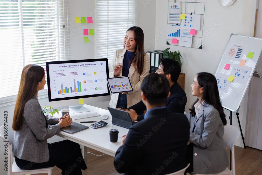 Accounting company provide finance and taxation planning for profitable cash flow, Auditor accountant asian team working in office, analyze financial data and accounting record with calculator.Insight