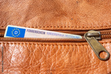 German driver's license in leather bags pocket with EU flag visible, Modern European driving permit, transport rights, EU citizen travel, Germany mobility document, close-up macro shot