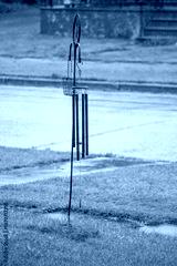 A wind chime on the lawn