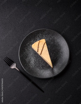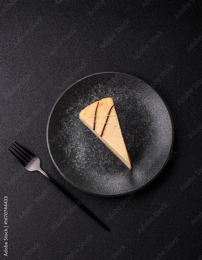 A piece of sweet New York cheesecake, dessert, cheese and vanilla pie. Classic cheesecake