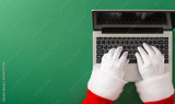 Santa Claus typing on a modern laptop, emphasizing Christmas and technology synergy