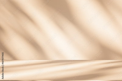 Wall interior background, studio and backdrops show products. with leaf shadow from window color beige and white. background for text insertion and presentation of product