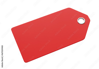 Isolated rectangular red price tag, clothing label, sales sticker, or product swing tag