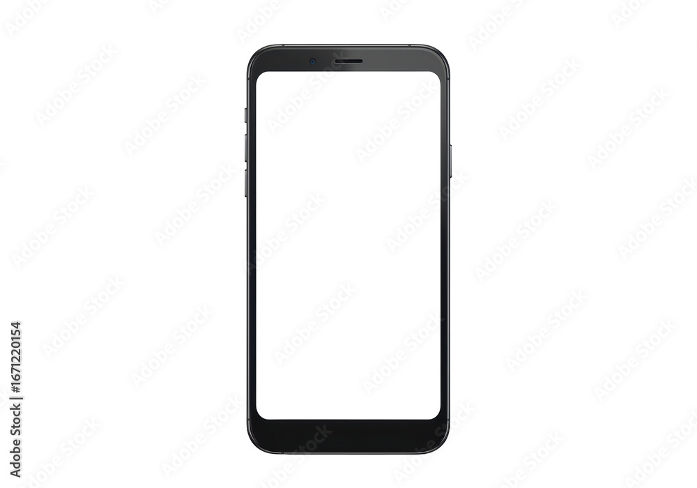 Isolated smartphone with blank screen, generic device for mockup presentation, modern cell phone