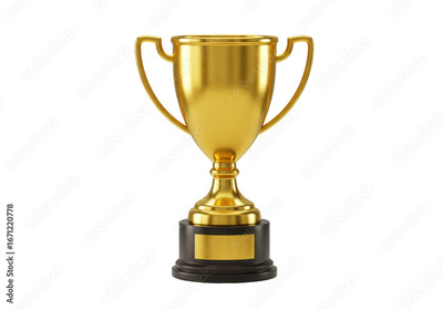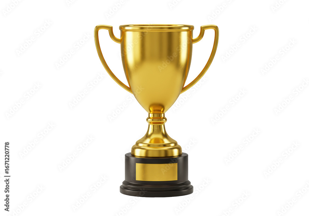 Isolated Gold Cup Trophy Still Life with Handles and Base, Award for Achievement
