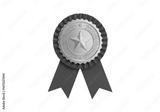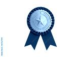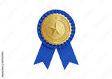 Isolated award ribbon with gold star and blue accents, for quality approval and recognition