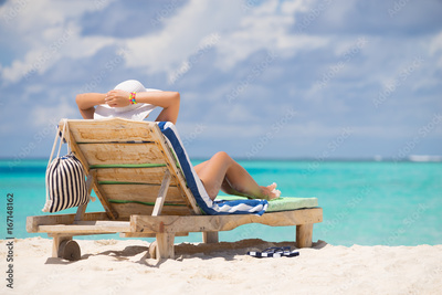 Beautiful beach. View of nice tropical beach with palms around. Holiday and vacation concept. Tropical beach.